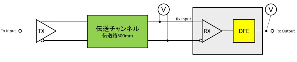 昨今の10GHzを超えるような高速シリアル通信では、損失の大きい伝送チャンネルを使用すると、受信端(受信機器のコネクタ部や受信デバイスのピン)で観測されるアイ波形は完全に閉じてしまい、オシロスコープでサンプリングした生波形で評価を行うことが出来ません。 そのため、生波形からではなく、受信デバイス内のイコライザを模擬し、補正された波形の品質により評価されています。